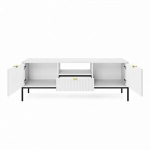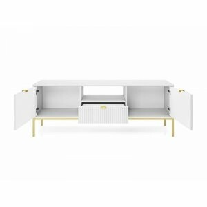 Szafka rtv ma stabilny blat telewizor pewnie stoi. Wykończenie nie łapie odcisków. Wnętrze jest logicznie podzielone porządek robi się sam. Polecam
