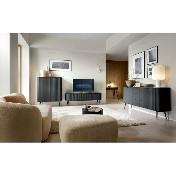 Kolekcja mebli Zova wzbogaci każde nowoczesne pomieszczenie mieszkalne, tworząc kompozycje w pięknym stylu. Modny kolor- czarny nada specjalnego charakteru każdemu otoczeniu. Pojemne bryły meblowe zepewnią dużo przestrzeń do przechowywania.