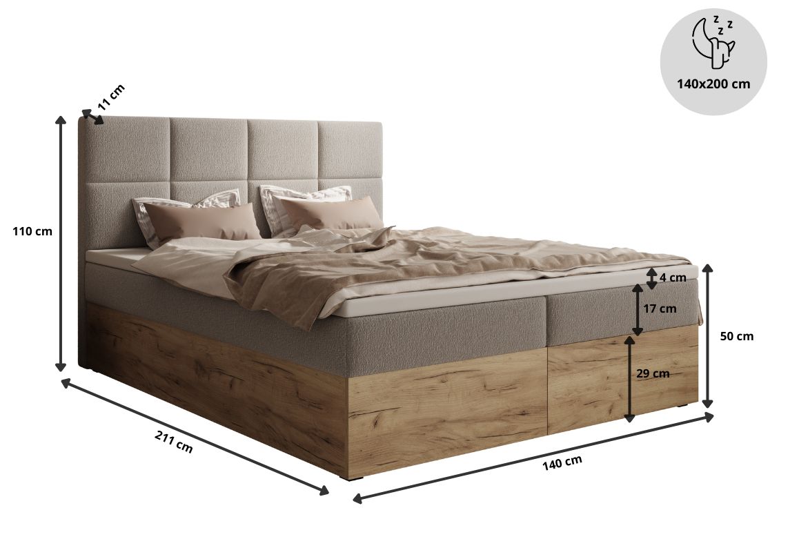 Łóżko tapicerowane, dwuosobowe, skrzynia na pościel