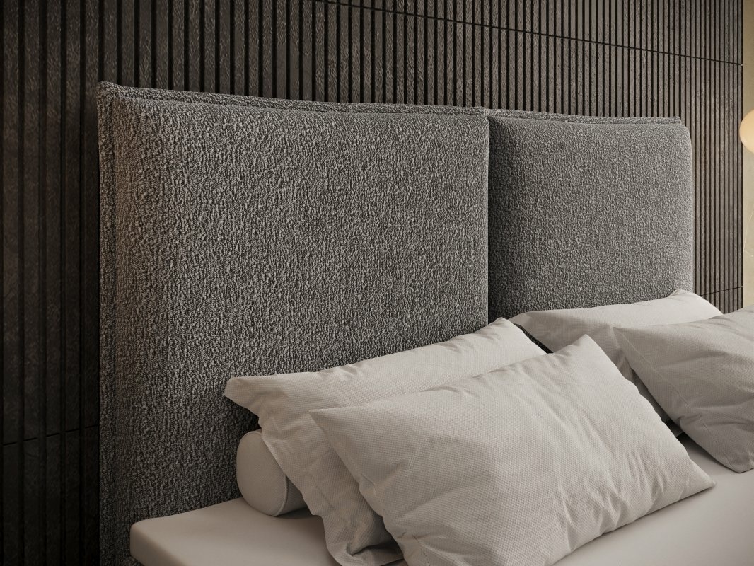 Calmo to nowoczesne łóżko kontynentalne zaprojektowane z myślą o wygodzie codziennego użytkowania, solidnej konstrukcji oraz minimalistycznej estetyce, która doskonale wpisuje się w aranżacje nowoczesnych i skandynawskich sypialni. Prosta, masywna bryła oraz tapicerowane zagłowie z geometrycznymi podziałami nadają całości spokojny, uporządkowany charakter.