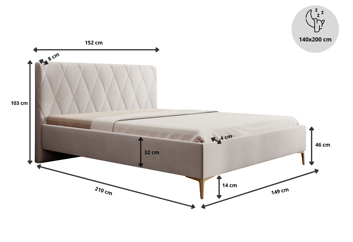 Łóżko tapicerowane, dwuosobowe, skrzynia na pościel