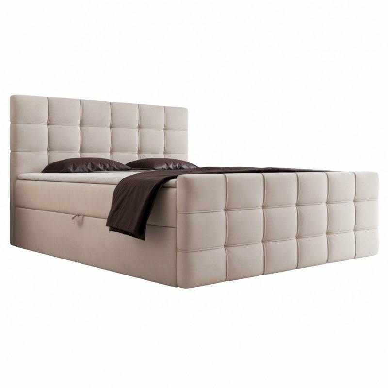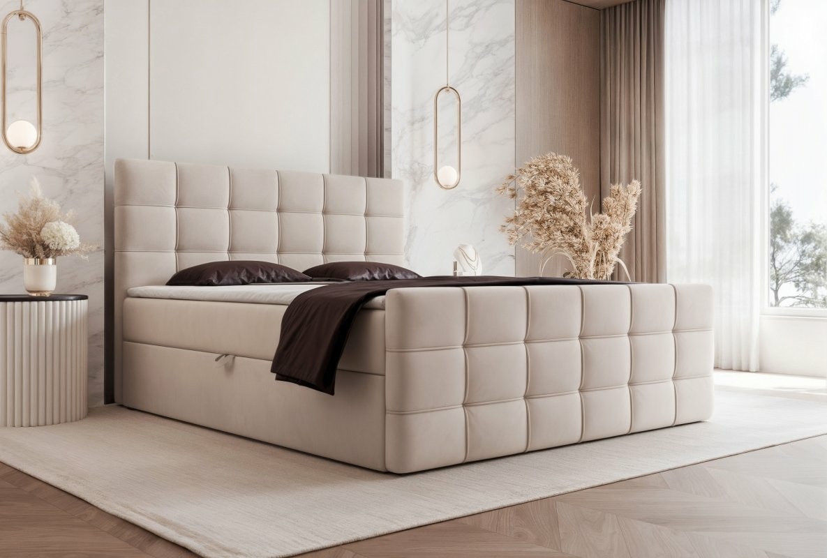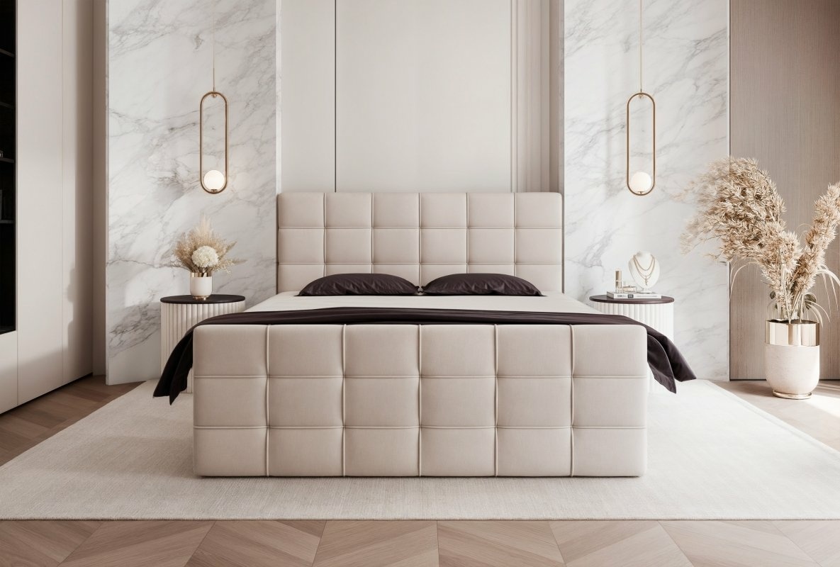 Łóżko tapicerowane, dwuosobowe, skrzynia na pościel