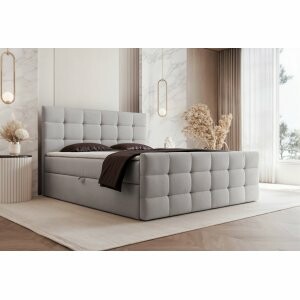 Łóżko kontynentalne Delaro to wyważone połączenie nowoczesnej estetyki z funkcjonalnym designem. Charakterystyczne pikowania w formie szachownicy, zastosowane zarówno na wysokim zagłówku, jak i podwyższonym zanóżku, nadają meblowi wyrazisty rytm i przyciągają wzrok. Dzięki praktycznym rozwiązaniom, takim jak dwa pojemniki na pościel oraz opcjonalny topper, model Delaro to doskonała propozycja do sypialni w stylu modern classic, minimalistycznym lub soft glam.