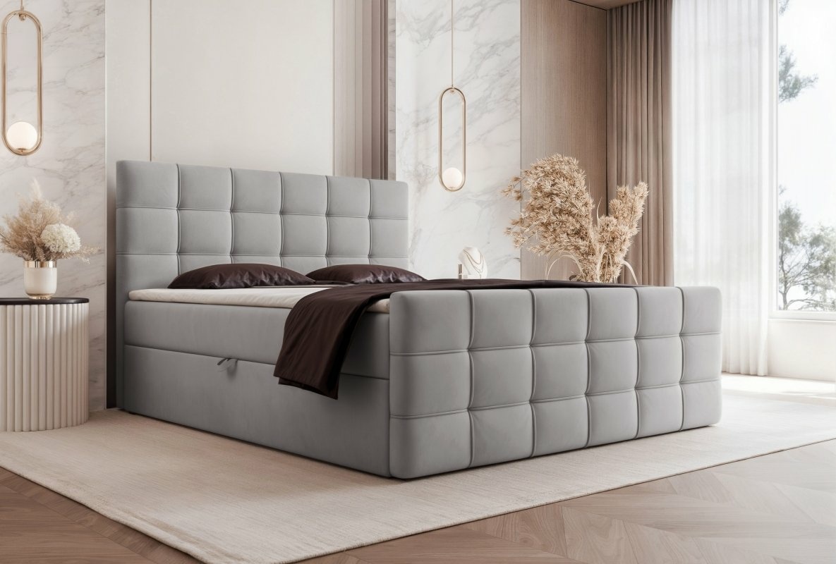 Łóżko tapicerowane, dwuosobowe, skrzynia na pościel