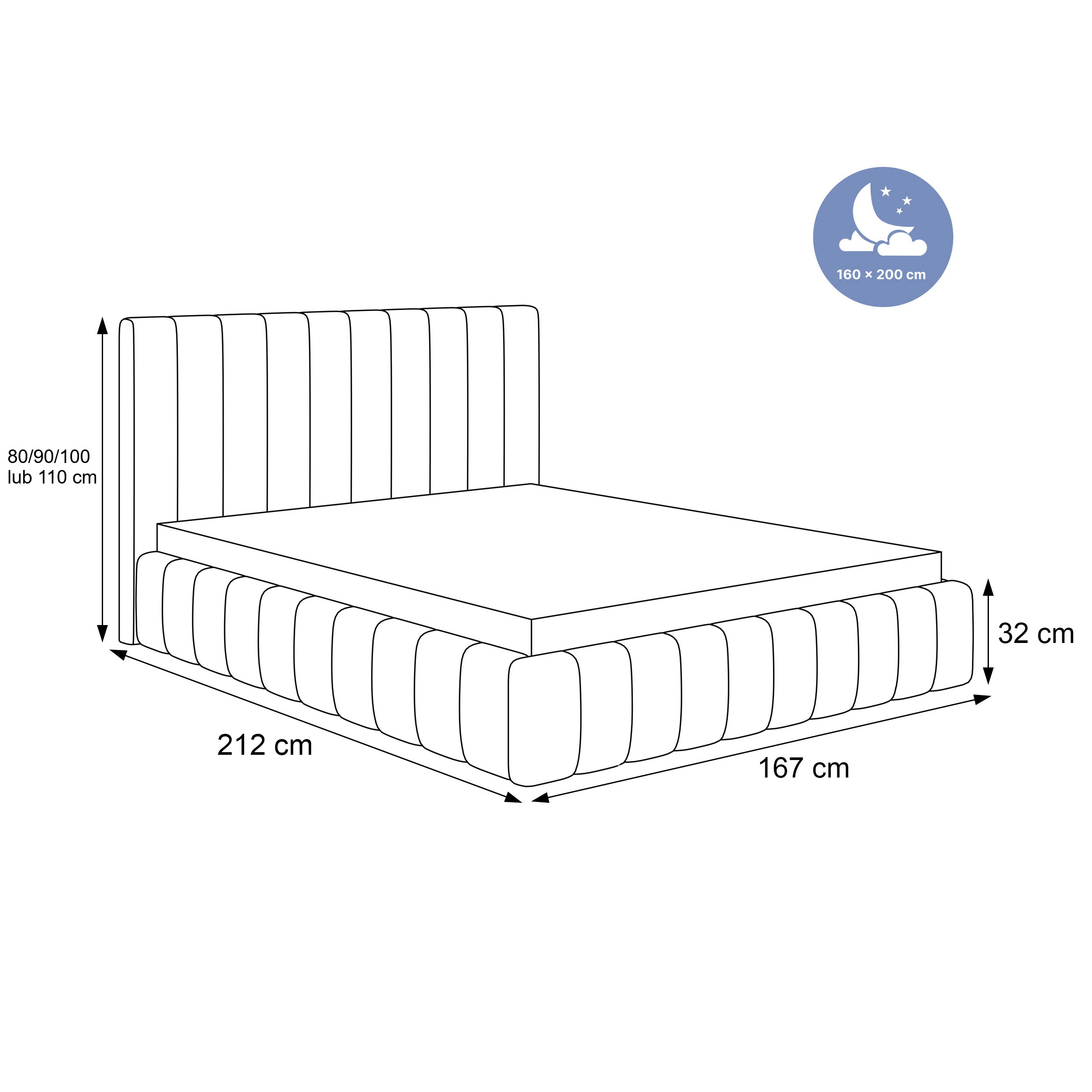 Łóżko tapicerowane, dwuosobowe, skrzynia na pościel