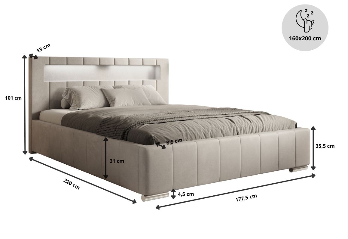 Łóżko tapicerowane, dwuosobowe, skrzynia na pościel