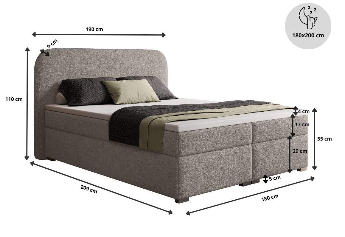 Łóżko tapicerowane, dwuosobowe, skrzynia na pościel