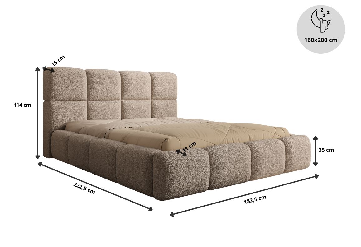 Łóżko tapicerowane, dwuosobowe, skrzynia na pościel