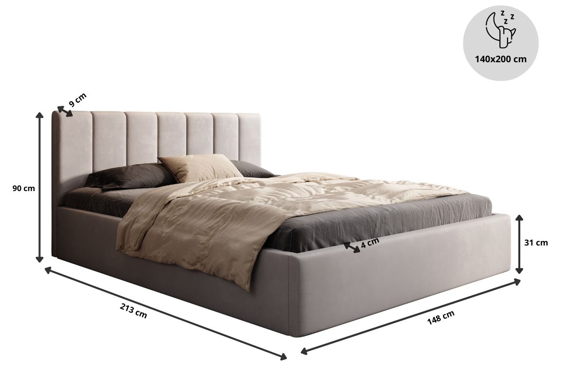 Łóżko tapicerowane, dwuosobowe, skrzynia na pościel