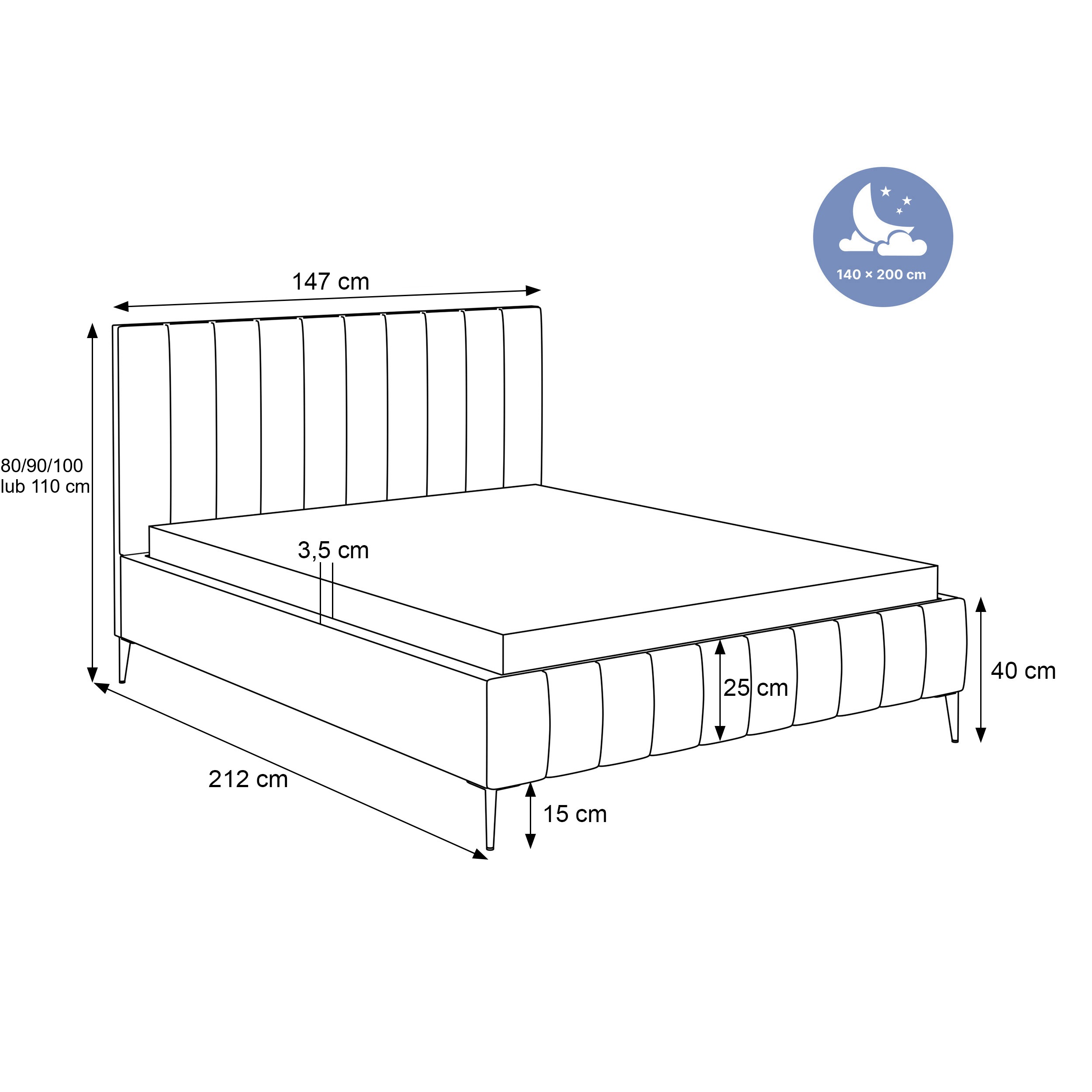 Łóżko tapicerowane, dwuosobowe, skrzynia na pościel