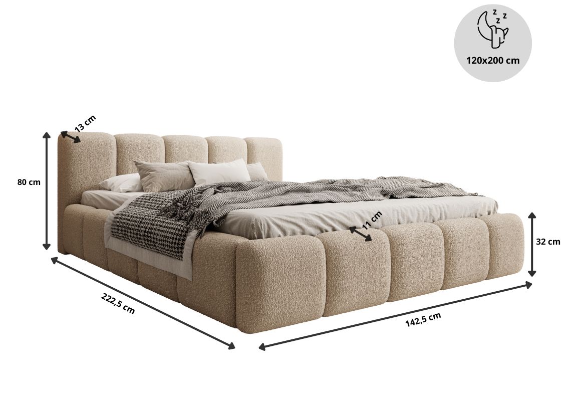 Łóżko tapicerowane, dwuosobowe, skrzynia na pościel