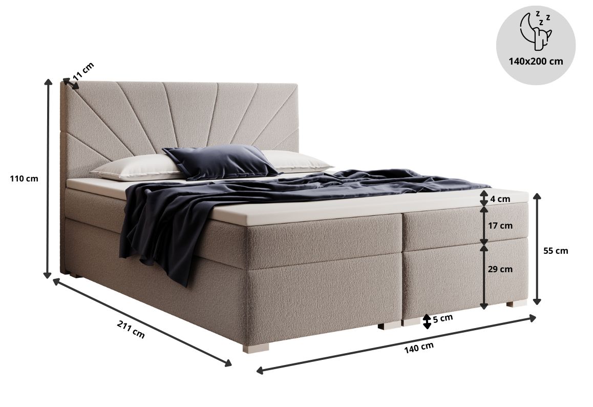 Łóżko tapicerowane, dwuosobowe, skrzynia na pościel
