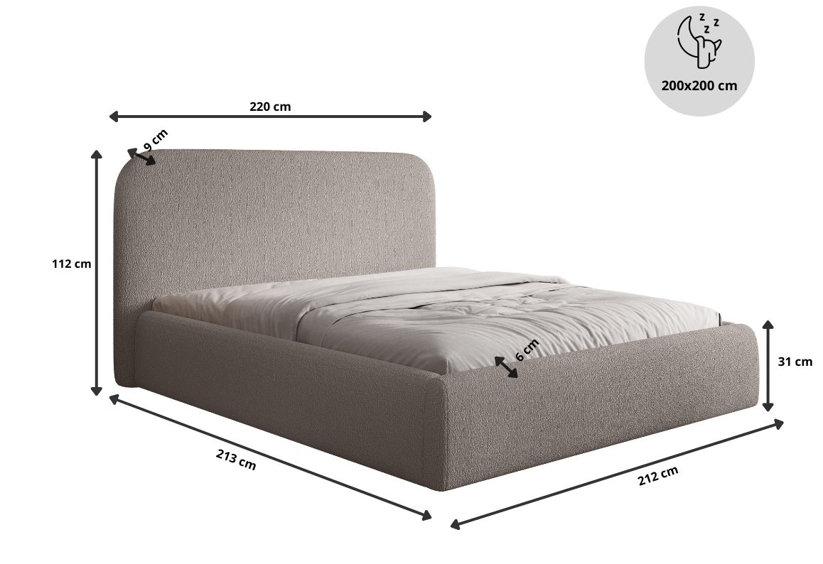 Łóżko tapicerowane, dwuosobowe, skrzynia na pościel