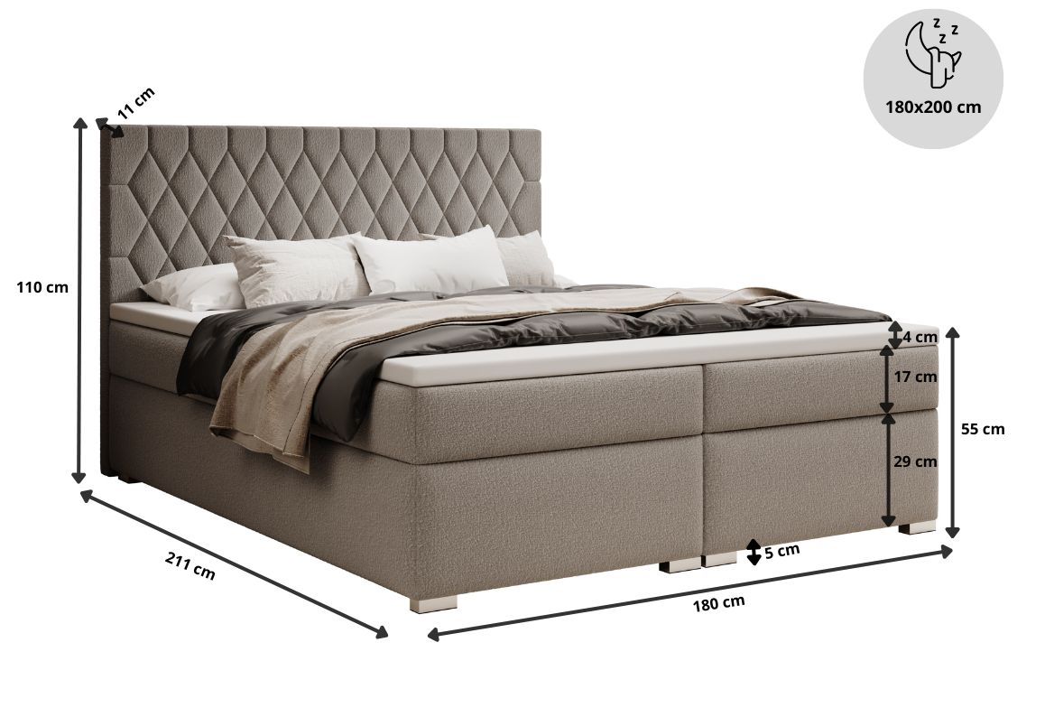 Łóżko tapicerowane, dwuosobowe, skrzynia na pościel