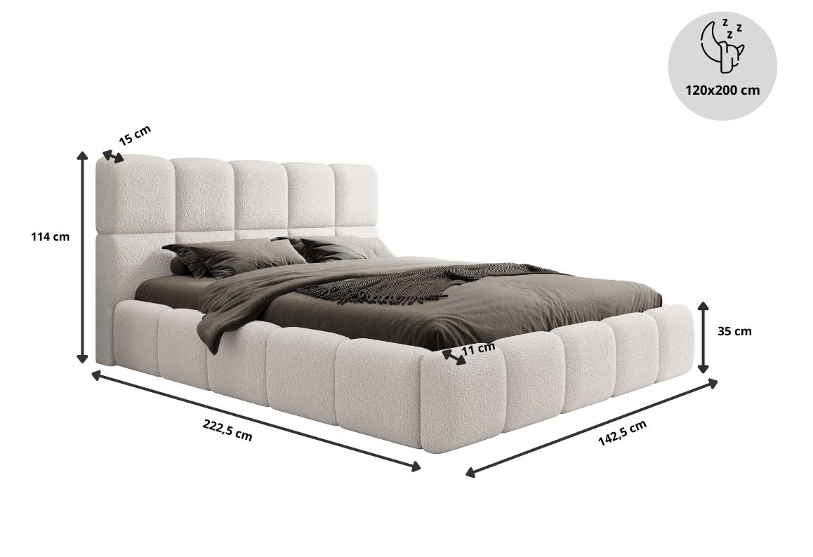 Łóżko tapicerowane, dwuosobowe, skrzynia na pościel