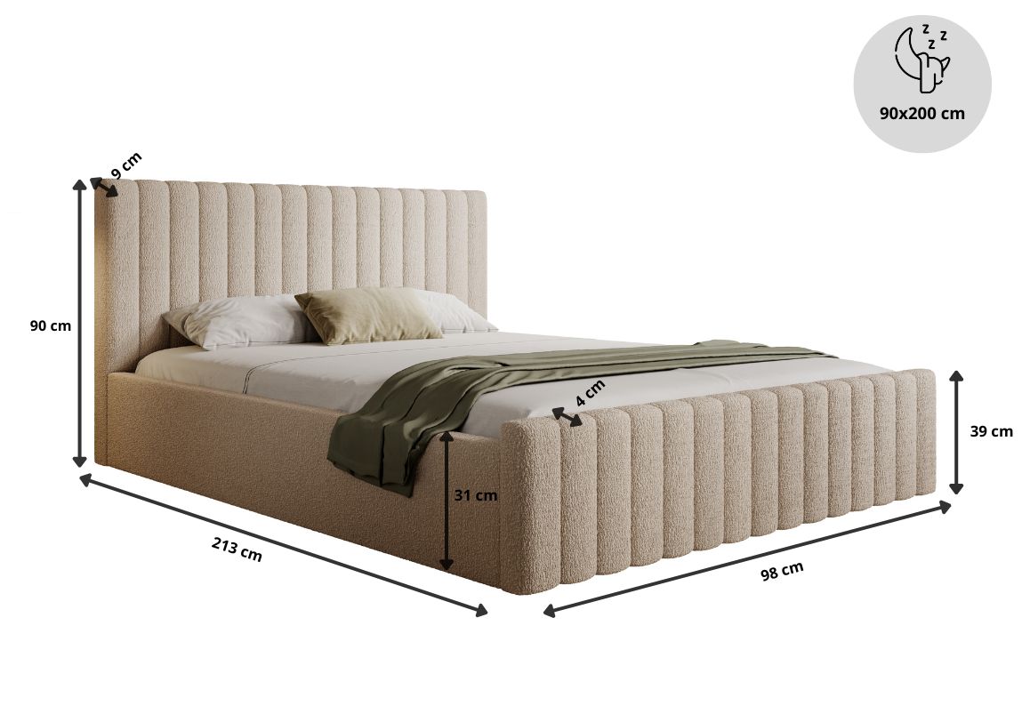 Łóżko tapicerowane, dwuosobowe, skrzynia na pościel