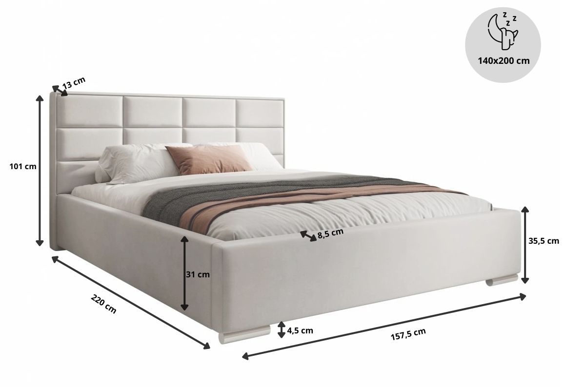 Łóżko tapicerowane, dwuosobowe, skrzynia na pościel