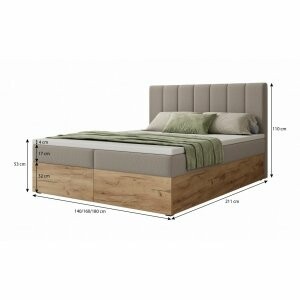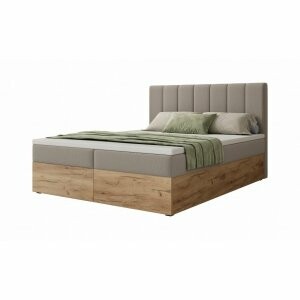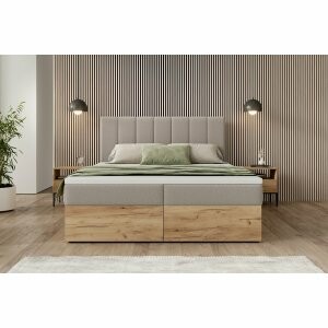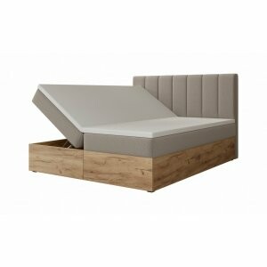 W łóżku zastosowano dwa duże pojemniki w kolorze craft złoty, które pozwolą schować sporo przedmiotów. Zamontowane automaty sprężynowe wspomagają podnoszenie, przez co jest one bardzo lekkie.