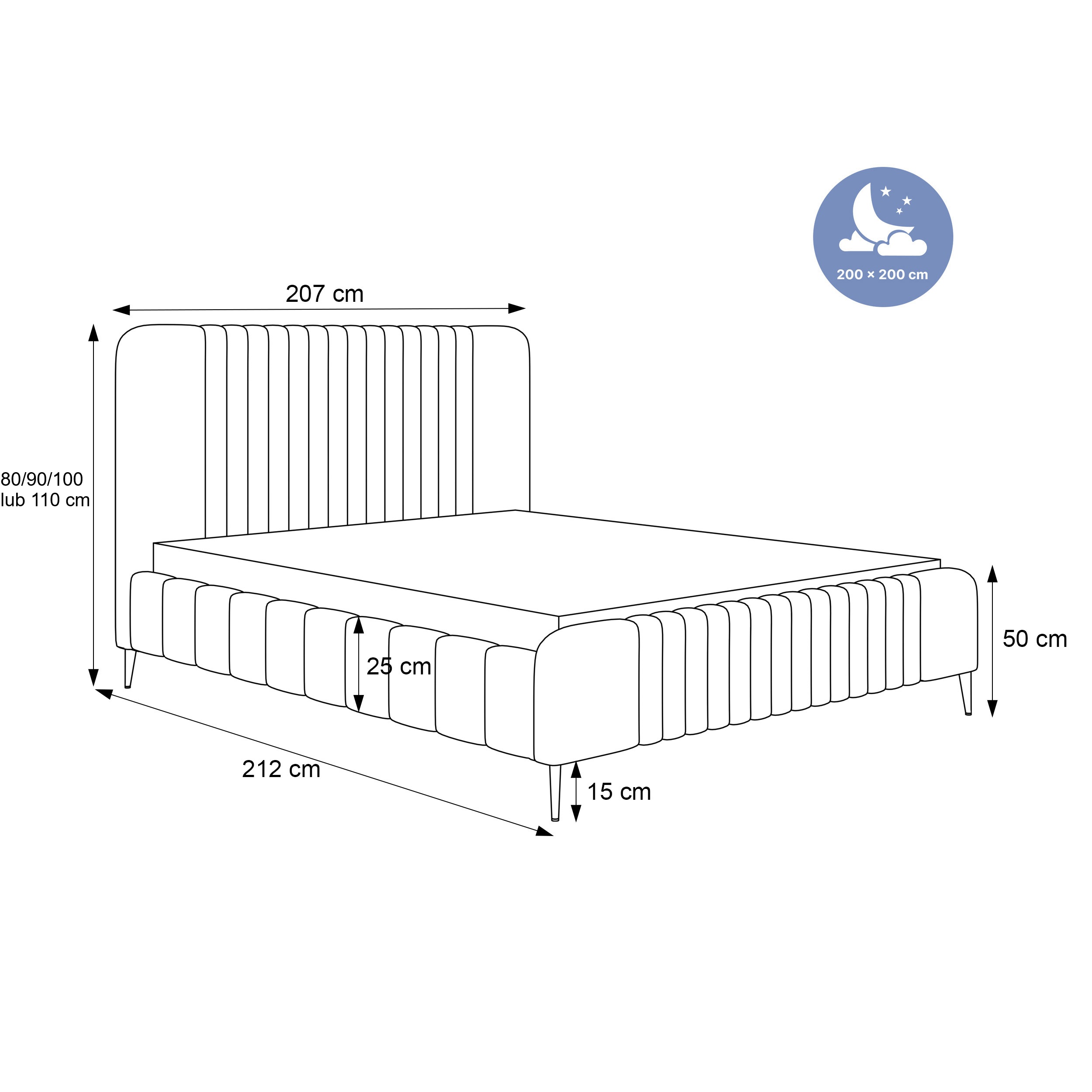 Łóżko tapicerowane, dwuosobowe, skrzynia na pościel