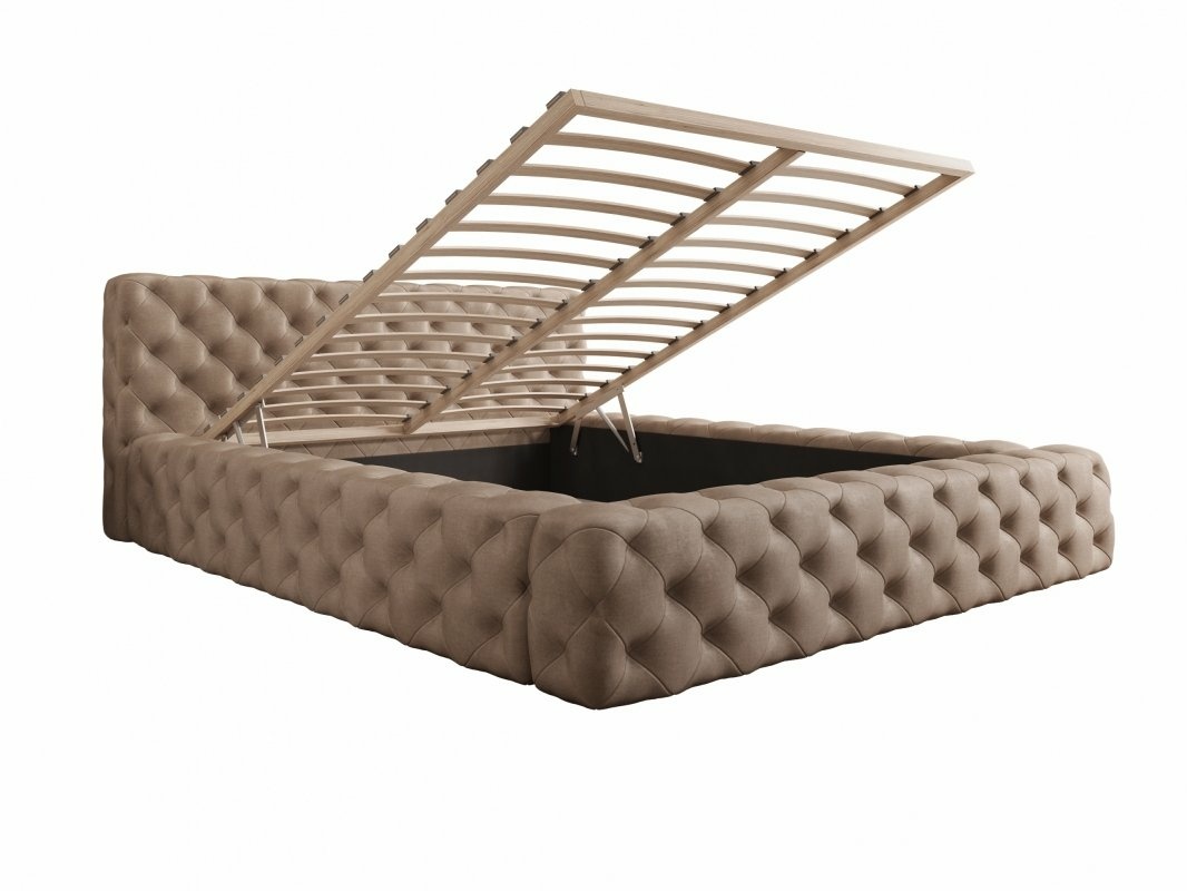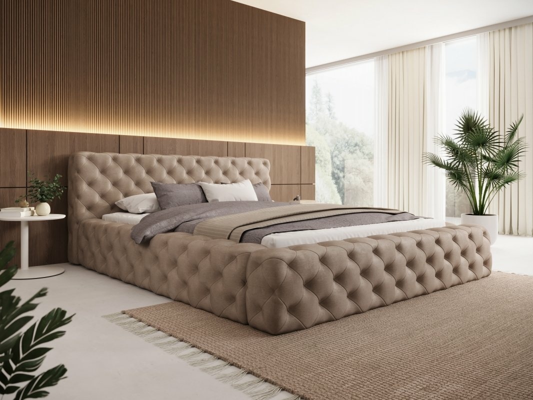 Łóżko tapicerowane, dwuosobowe, skrzynia na pościel