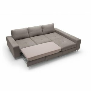 Narożnik z funkcją spania oraz pojemnikiem na pościel dostępny jest w wersji prawostronnej oraz lewostronnej, w szerokim wachlarzu tkanin obiciowych do wyboru.