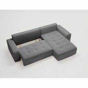 Dodatkowo, narożnik jest wyposażony w pojemnik na pościel, w którym można przechować koce, poduszki, a także inne niezbędne akcesoria. Tego rodzaju przechowywanie pozwala na utrzymanie porządku w salonie, a także maksymalne wykorzystanie przestrzeni.