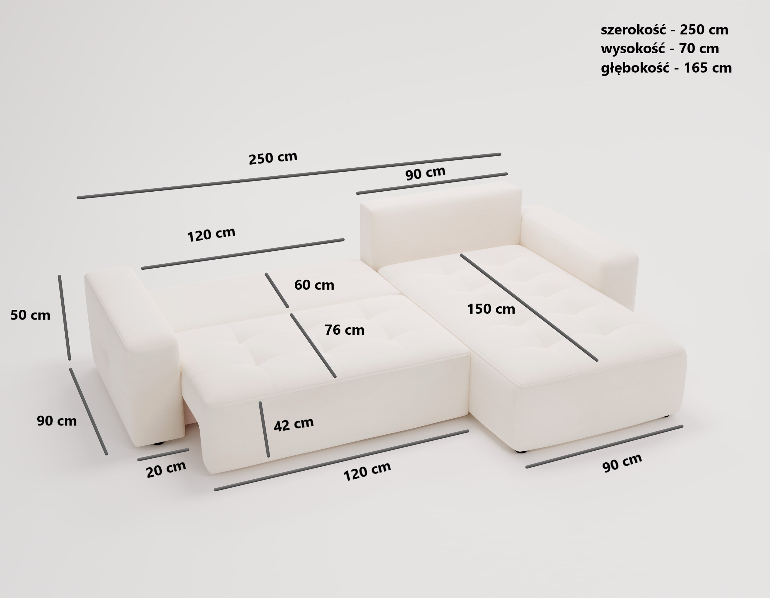 Narożnik Erste L to połączenie nowoczesnego designu, wygody oraz funkcjonalności. Dzięki funkcji spania, pojemnikowi na pościel oraz solidnej konstrukcji, jest to mebel, który doskonale sprawdzi się zarówno w codziennym użytkowaniu, jak i w przypadku potrzeby dodatkowego miejsca do spania. Jego elegancki wygląd, subtelne detale, możliwość personalizacji oraz funkcjonalność sprawiają, że jest to mebel, który będzie stanowił centralny punkt każdego salonu, łącząc w sobie komfort, styl i praktyczność.