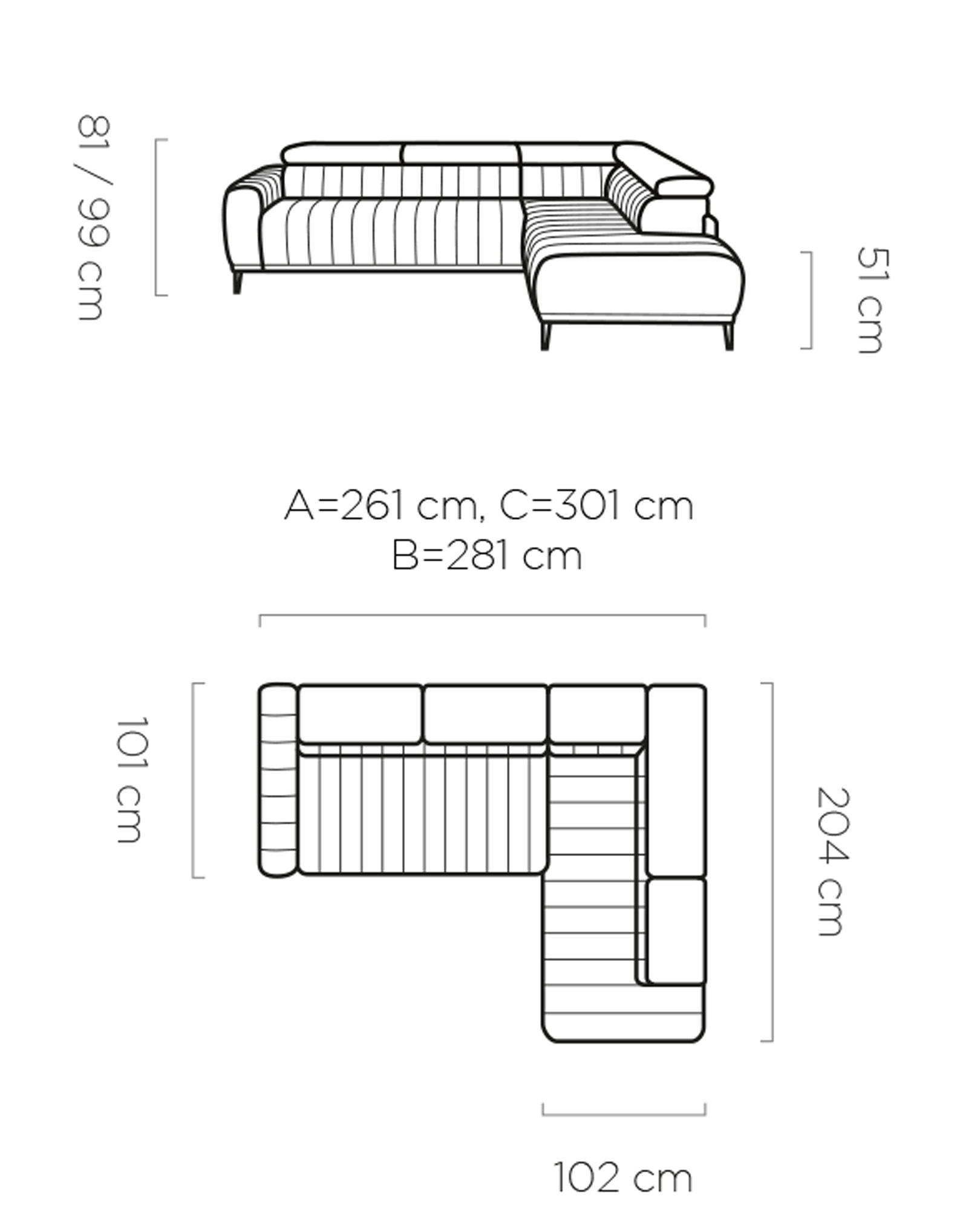 - Sofy z zagłówkami i kanaya z ruchomymi i regulowanymi zagłówkami
