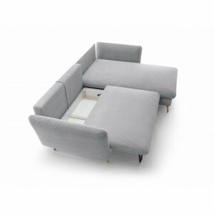 Wielofunkcyjność: Dzięki funkcji spania i pojemnikowi na pościel, narożnik Merle to idealne rozwiązanie do każdego mieszkania, szczególnie w przypadku mniejszych przestrzeni, gdzie liczy się każdy metr.