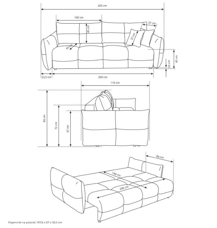 Sofa wygląda lepiej na żywo niż na zdjęciach w internecie. Dekoracyjne przeszycia dodają charakteru. Po kilku tygodniach użytkowania siedzisko i oparcia są równe, nie ma żadnych dziwnych zagłębień