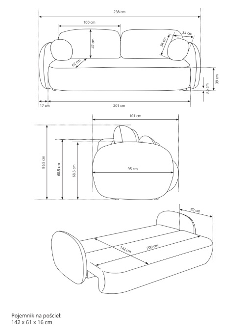 Wybrany model sofy wygląda nowocześnie i nie przytłacza pokoju. Po 6 tygodniach użytkowania mogę potwierdzić. Sofa nie trzeszczy i nie ugina się. Wygląda jak mebel na lata