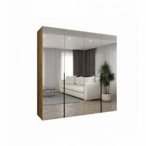 Szafa Almera Duo 200 dąb artisan to propozycja, która łączy duże możliwości przechowywania z eleganckim wyglądem. Dzięki lustrzanym frontom szafa staje się nie tylko funkcjonalnym meblem, ale i ozdobą wnętrza.
