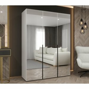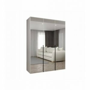 Szafa Almera Duo 150 to elegancki mebel, który łączy praktyczność z nowoczesnym wyglądem. Korpus w kolorze biały mat prezentuje się subtelnie i uniwersalnie, a fronty w całości wykonane z lustra dodają wnętrzu przestronności, rozświetlają je i pełnią funkcję użytkową. To doskonałe rozwiązanie do sypialni, garderoby lub przedpokoju.