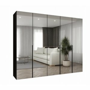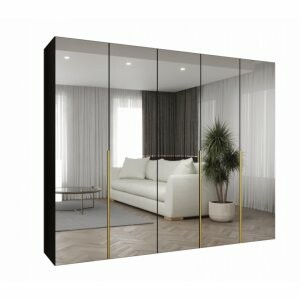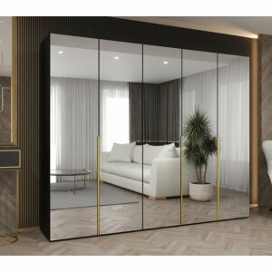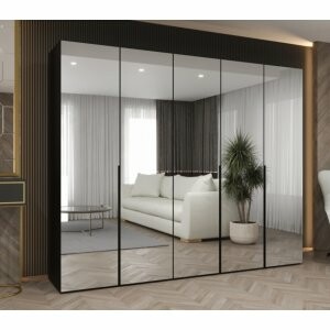 Szafa Almera Duo 250 to elegancki i przestronny mebel, który idealnie sprawdzi się w dużych wnętrzach. Korpus w kolorze czarny mat nadaje całości wyrazistego, nowoczesnego charakteru, a fronty w całości wykonane z lustra sprawiają, że pomieszczenie zyskuje na jasności i optycznie wydaje się większe.