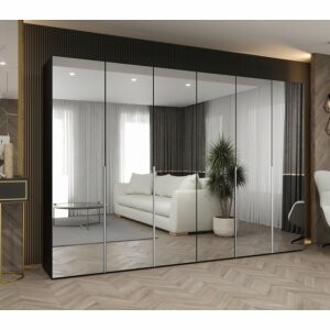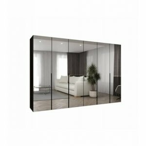 Szafa Almera Duo 300 czarny mat to nowoczesny i efektowny mebel, który łączy ogromną pojemność z eleganckim designem. Lustrzane fronty czynią ją nie tylko praktyczną, ale również wyjątkowo dekoracyjną częścią wnętrza.