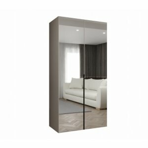 Szafa Almera Duo 100 w wersji korpus kaszmir i fronty w całości z lustra to kompaktowy mebel, który doskonale łączy elegancję i funkcjonalność. Delikatny, stonowany kolor korpusu ociepla wnętrze, a lustrzane fronty sprawiają, że pomieszczenie staje się optycznie większe i jaśniejsze.