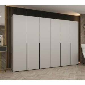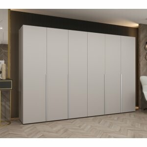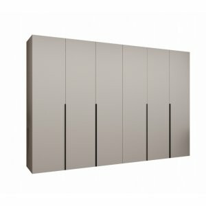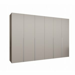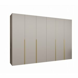 Szafa Almera 300 w kolorze kaszmir to największy model w kolekcji, zapewniający maksymalną przestrzeń do przechowywania w eleganckiej i nowoczesnej formie. Jej subtelna kolorystyka sprawia, że wnętrza stają się bardziej przytulne i harmonijne, a funkcjonalne wnętrze pozwala na wygodne uporządkowanie garderoby.