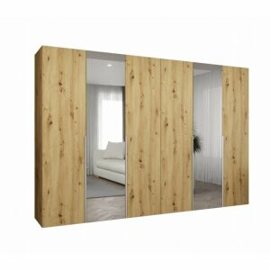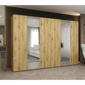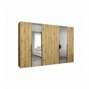 Szafa Almera Lux 300 dąb artisan to połączenie elegancji, funkcjonalności i naturalnego charakteru. Dzięki dużej szerokości oraz lustrzanym frontom jest nie tylko praktycznym meblem do przechowywania, ale również elementem dekoracyjnym, który odmieni każde wnętrze.