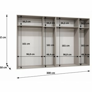 • przestrzenie o wysokości 161 cm, które pozwalają wieszać zarówno krótszą, jak i dłuższą odzież.
