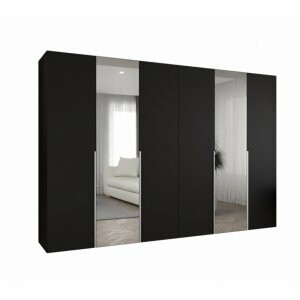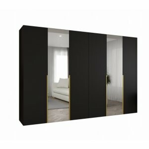 Szafa Almera Lux 300 czarny mat to mebel, który łączy nowoczesny wygląd z ogromną funkcjonalnością. Lustra na frontach dodają elegancji i sprawiają, że wnętrze staje się bardziej przestronne i stylowe.