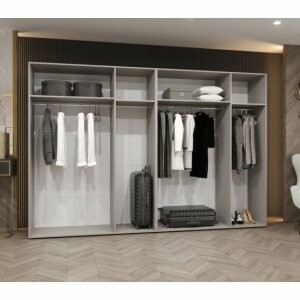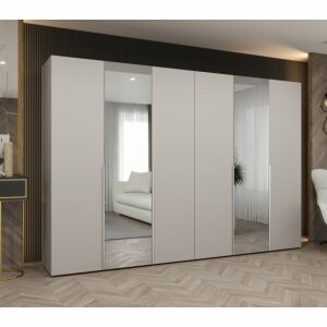 Szafa Almera Lux 300 kaszmir to idealne rozwiązanie dla osób, które oczekują maksimum przestrzeni i elegancji w jednym meblu. Dzięki lustrzanym frontom i jasnej kolorystyce świetnie sprawdzi się w dużych sypialniach i garderobach, nadając im wyjątkowego charakteru.