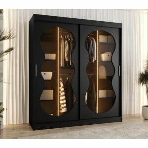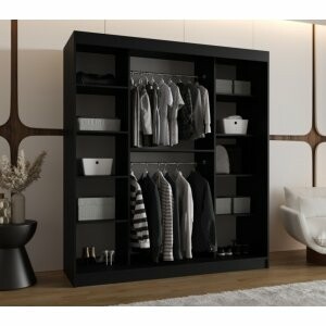 Szafa przesuwna Belvano 180 czarny mat łączy nowoczesny wygląd z funkcjonalnym wnętrzem, zapewniając dużą przestrzeń do przechowywania.