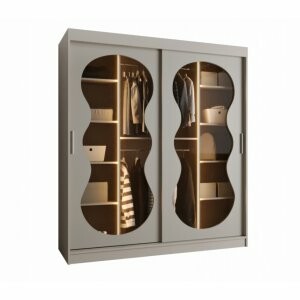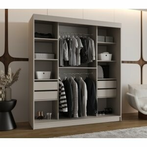 Szafa przesuwna Belvano 180 w kolorze kaszmir to stylowy i pojemny mebel, który łączy wyjątkowy design z praktycznym układem wnętrza – idealnie sprawdzi się w każdej nowoczesnej aranżacji sypialni czy garderoby.