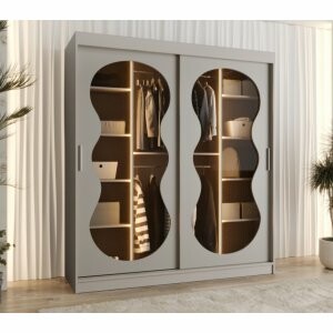 • funkcjonalne wnętrze z licznymi półkami po obu stronach szafy, idealnymi do przechowywania odzieży, dodatków i obuwia