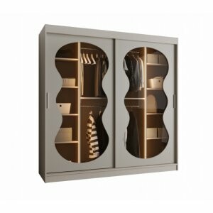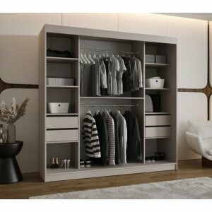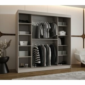 Szafa przesuwna Belvano 200 w kolorze kaszmir to elegancki i wyjątkowo pojemny mebel, który łączy nowoczesny design z wysoką funkcjonalnością, wnosząc do wnętrza styl i wygodę.