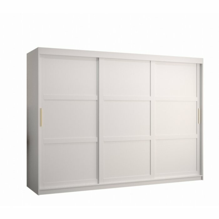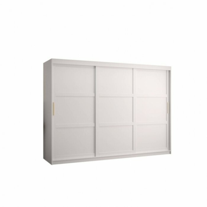 • typ: szafa przesuwna – wyposażona w trzy fronty przesuwne, które przesuwają się płynnie wzdłuż korpusu, umożliwiając wygodne korzystanie z całej szerokości szafy bez zajmowania dodatkowego miejsca