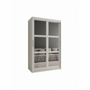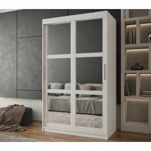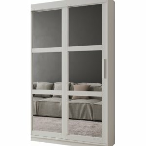 Szafa Gloss 120 biały mat to pojemny, a zarazem elegancki mebel, który świetnie sprawdzi się w sypialni, garderobie lub przedpokoju. Jasny korpus w połączeniu z lustrzanym frontem rozjaśnia pomieszczenie i optycznie je powiększa, a system drzwi przesuwnych oszczędza miejsce.