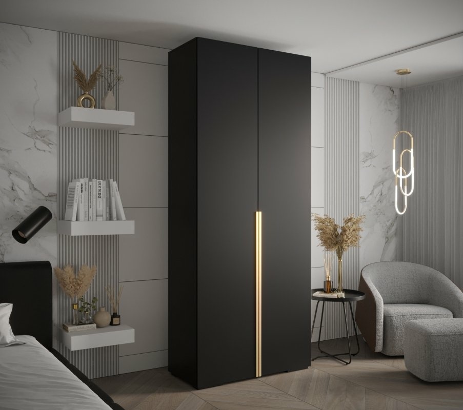 • Drzwi uchylne z metalowymi uchwytami w kolorze złotym lub czarnym – do wyboru.
