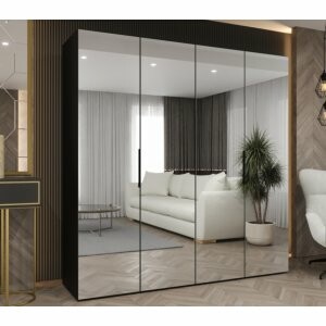 Szafa Lumera Duo 200 to połączenie nowoczesnej formy i dużej funkcjonalności. Korpus w kolorze czarny mat nadaje jej wyrazistego charakteru, a fronty w całości pokryte lustrami sprawiają, że wnętrze staje się jaśniejsze i optycznie większe.