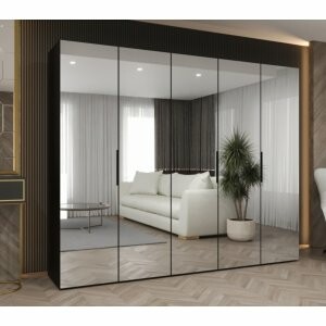 Szafa Lumera Duo 250 to propozycja dla osób, które cenią minimalistyczną elegancję i potrzebują dużo miejsca do przechowywania. Korpus w kolorze czarny mat nadaje meblowi wyrazistego charakteru, a fronty w całości wykonane z luster sprawiają, że wnętrze staje się jaśniejsze, bardziej przestronne i nowoczesne.